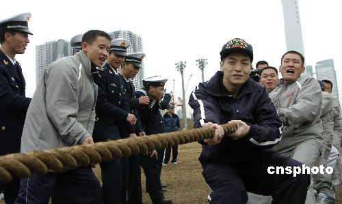 11月29日上午,正在日本進(jìn)行友好訪問(wèn)的中國(guó)海軍“深圳”號(hào)導(dǎo)彈驅(qū)逐艦上的官兵在此間與日本海上自衛(wèi)隊(duì)官兵進(jìn)行了體育交流。雙方隊(duì)員分成兩支混合隊(duì)伍進(jìn)行足球、拔河比賽。中新社發(fā) 朱沿華 攝