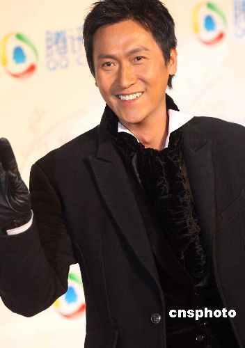 香港藝人馬德鐘黑風(fēng)衣亮相北京星光大典。