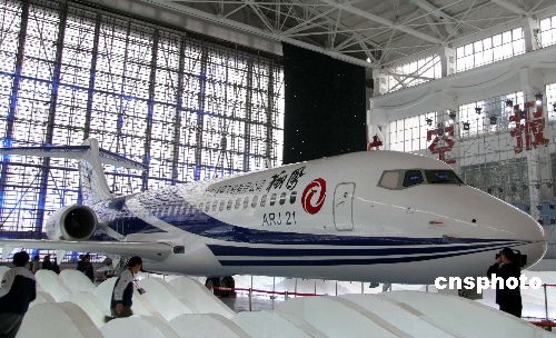 十二月二十一日下午,由中國(guó)航空工業(yè)第一集團(tuán)公司(中國(guó)一航)自行研制生產(chǎn)的中國(guó)首架自主知識(shí)產(chǎn)權(quán)噴氣支線客機(jī)ARJ21-700飛機(jī),其中文名為“翔鳳”,寓意矯健飛翔之鳳,在上海飛機(jī)制造廠順利實(shí)現(xiàn)總裝下線。此舉表明,中國(guó)在民用飛機(jī)科研和制造領(lǐng)域取得突破性進(jìn)展,中國(guó)自主研制的先進(jìn)噴氣支線客機(jī)已成為世界民用客機(jī)大家庭的新成員。中新社發(fā) 孫自法 攝