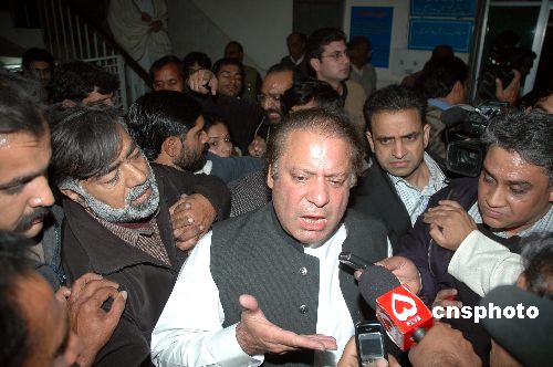 聞知貝·布托遇襲的消息后,巴基斯坦前總理謝里夫到醫(yī)院探望。