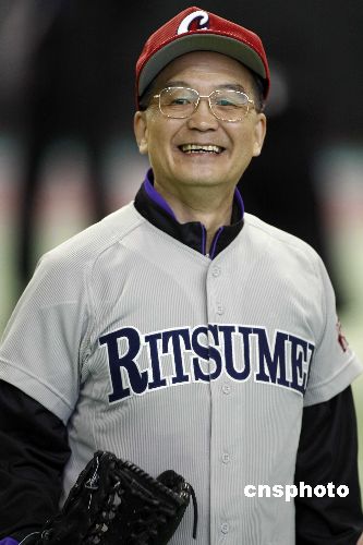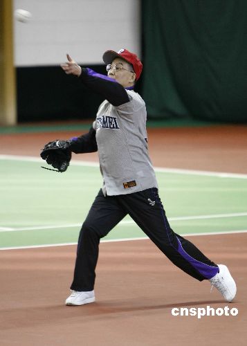 十二月二十九日,中國國務(wù)院總理溫家寶在北京釣魚臺(tái)國賓館內(nèi)的網(wǎng)球館與日本首相福田康夫共同練習(xí)棒球投球。中新社發(fā) 盛佳鵬 攝