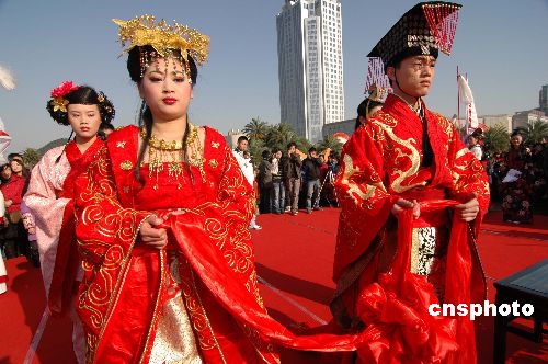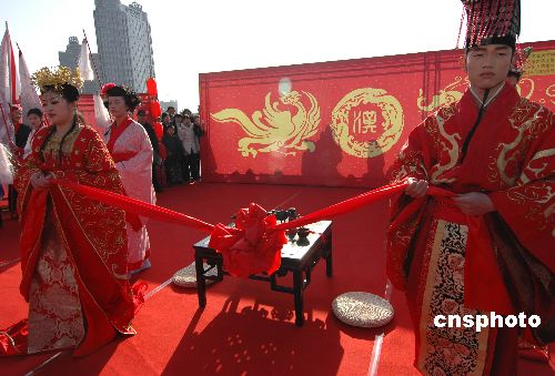 圖:浙江一婚慶公司把傳統(tǒng)婚俗“搬”到廣場