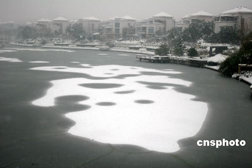 2008年1月27日,南京城南花神湖的冰面上,一幅幅圖畫般的“冰上雪”讓許多市民嘖嘖稱奇。南京連續(xù)的強(qiáng)降雪,給城南的花神湖披上了一件格外美麗的衣裳。中新社發(fā) 孫忠南 攝