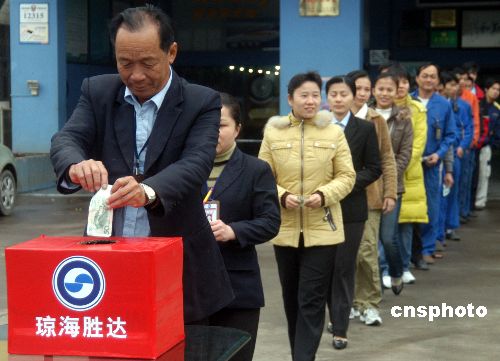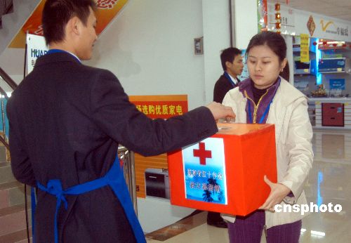 2008年2月5日,瓊海市民在踴躍捐款救災(zāi)。我國南方部分地區(qū)遭受雪災(zāi)牽動(dòng)全國人民的心,在海南省紅十會(huì)倡議組織下,連日來海南各界群眾積極捐款捐物,向?yàn)?zāi)區(qū)人民獻(xiàn)愛心。中新社發(fā) 蒙鐘德 攝