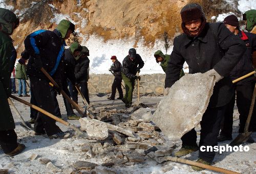 2月4日至5日,陜西鳳縣機(jī)關(guān)干部和黃牛鋪鎮(zhèn)群眾共1000余人,出動(dòng)4臺(tái)大型機(jī)械,清理212省道秦嶺路段的冰雪,確保春運(yùn)暢通。中新社發(fā) 王健 攝