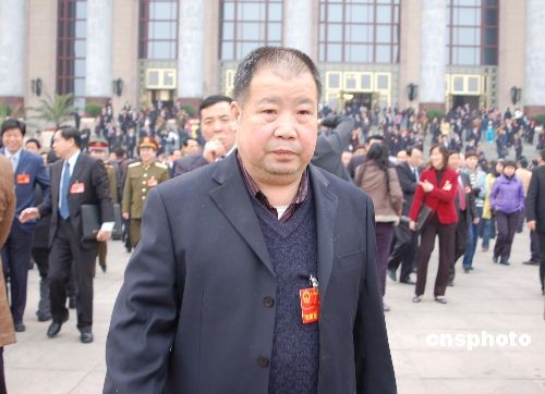 3月8日,全國人大代表、著名作家二月河參加完十一屆全國人大一次會議第二次全體會議后走出人民大會堂。中新社發(fā) 劉萬強 攝
