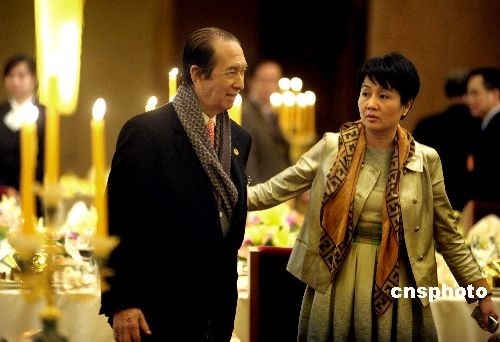 3月13日晚,全國(guó)政協(xié)常委何鴻燊夫婦在北京釣魚(yú)臺(tái)國(guó)賓館出席港澳委員招待會(huì)。當(dāng)晚,全國(guó)政協(xié)辦公廳、中共中央統(tǒng)戰(zhàn)部舉行招待會(huì),招待參加全國(guó)政協(xié)十一屆一次會(huì)議的港澳地區(qū)全國(guó)政協(xié)委員。中新社發(fā) 廖攀 攝