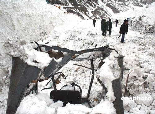 3月16日,新疆天山果子溝通往事故現(xiàn)場(chǎng)的山路再次發(fā)生雪崩,阻斷了救援人員進(jìn)出的唯一通道,嚴(yán)重影響了救援工作的開展。到目前為止,初步核實(shí)位于新疆天山果子溝的西氣東輸二線工程一處隧道施工現(xiàn)場(chǎng)發(fā)生雪崩,有22人被困或掩埋,已有6人獲救,3人死亡,其余13人仍下落不明。中新社發(fā) 馬耀林 攝