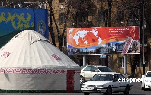 圖:圣火傳遞前阿拉木圖新建蒙古包