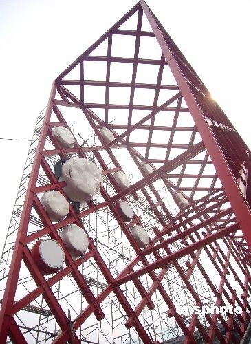 圖:奧林匹克中心區(qū)開始安裝吉慶大鼓(2)