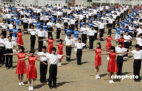 圖:山東威海舉辦迎奧運(yùn)校園集體舞大賽(4)