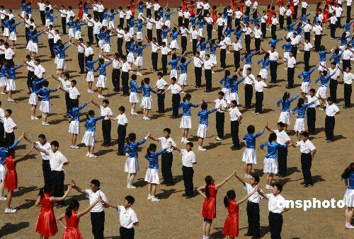圖:山東威海舉辦迎奧運校園集體舞大賽(6)