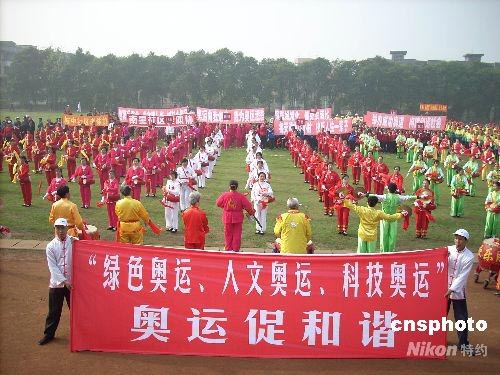 圖:四川彭山組織迎奧運(yùn)千人健步行
