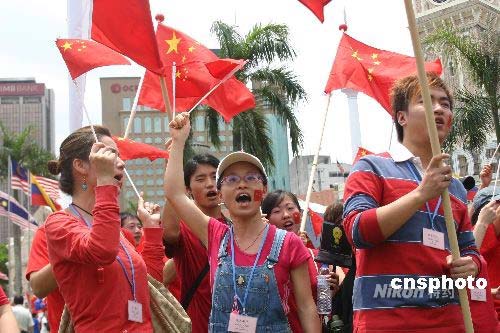 圖:中國(guó)留學(xué)生在吉隆坡為奧運(yùn)圣火助威(2)