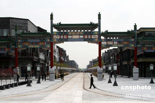 2008年4月21日,北京前門大街改造工程基本修整完畢,其正陽門及兩旁的建筑已展露出較強(qiáng)的明清時(shí)代的風(fēng)韻。今年“五一”,前門步行街將對游人開放。中新社發(fā) 任丘 攝
