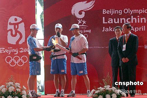 4月22日下午2時(shí)15分,雅加達(dá)特區(qū)省長(zhǎng)法烏茲手持“祥云”火炬跑出第一棒,北京奧運(yùn)圣火在雅加達(dá)的傳遞正式啟動(dòng)。北京奧運(yùn)圣火雅加達(dá)站傳遞從蘇加諾體育中心東門開(kāi)始,八十名火炬手圍繞其中的蘇加諾體育場(chǎng)進(jìn)行七公里左右的傳遞。八十位火炬手中,有印尼現(xiàn)役和退役優(yōu)秀運(yùn)動(dòng)員、贊助商代表、政府官員、社會(huì)活動(dòng)家等。