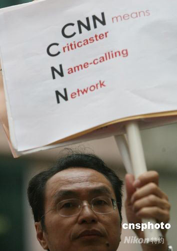 香港教育團(tuán)體集會(huì)抗議CNN電視主播辱華言論。中新社發(fā) 武仲林 攝