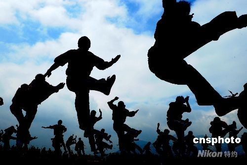 組圖:中國(guó)青少年熱練少林武術(shù)