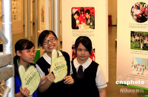 圖為香港學生觀摩奧運圖片展覽。 中新社發(fā) 王麗南 攝