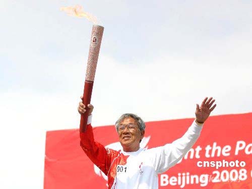 4月28日上午10時許,北京奧運(yùn)圣火在朝鮮首都平壤開始傳遞。北京奧運(yùn)圣火在平壤的傳遞,從主題思想塔出發(fā),途徑中朝友誼塔、千里馬雕像、凱旋門等主要景點(diǎn),最終在金日成體育場舉行慶典儀式。圖為第一棒火炬手樸斗翼高舉火炬。 中新社發(fā) 沈晨 攝