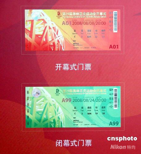 2008年4月23日,北京奧組委公布了奧運(yùn)門票的票樣。杜燕 攝