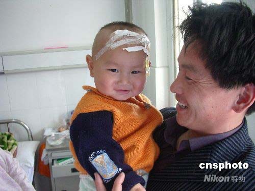 4月29日,阜陽(yáng)市第二人民醫(yī)院,家長(zhǎng)抱著已脫離生命危險(xiǎn)的患兒在病房?jī)?nèi)笑逐顏開(kāi)。家住安徽省阜陽(yáng)市潁泉區(qū)蘇屯鄉(xiāng)孟寨大隊(duì)1歲患兒劉暢,4月17日因發(fā)熱伴手足皮疹入住該醫(yī)院,當(dāng)時(shí)病情很?chē)?yán)重,經(jīng)醫(yī)院專(zhuān)家會(huì)診調(diào)整治療方案,目前病情穩(wěn)定。4月29日上午,安徽省衛(wèi)生廳副廳長(zhǎng)杜昌智在通報(bào)會(huì)上說(shuō),目前阜陽(yáng)共報(bào)告腸道病毒EV71感染病例1520例,其中痊愈585例,經(jīng)全力搶救無(wú)效死亡20例,仍在住院治療412例,其中重癥患者26例。中新社發(fā) 張婭子 攝