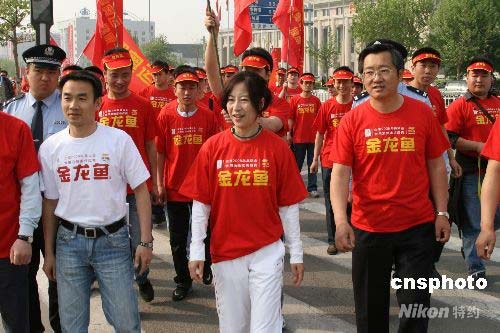 4月30日,北京奧運(yùn)會迎來開幕倒計時100天,天津迎奧運(yùn)萬人健步走活動啟動。2000年悉尼奧運(yùn)會競走冠軍王麗萍(中)與萬余名天津市民一起,步行4.5公里,宣傳奧運(yùn),祝福奧運(yùn)。 中新社發(fā) 田齊 攝