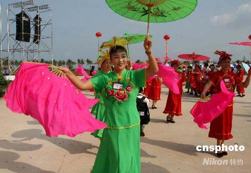 圖:海南三亞民眾載歌載舞期盼奧運(yùn)圣火抵達(dá) (2)