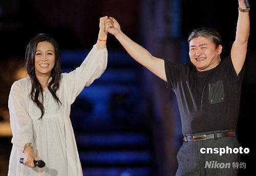 4月30日,北京2008年奧運會倒計時100天慶祝活動暨第四屆北京奧運歌曲評選活動頒獎晚會在北京勞動人民文化宮太廟舉行,兩岸三地眾星出席此次活動。當天,北京奧組委宣布,北京2008年奧運會歌曲專輯正式出版發(fā)行。中新社發(fā) 趙振清 攝