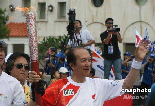 圖為“賭王”何鴻燊跑第二棒。 中新社發(fā) 武仲林 攝