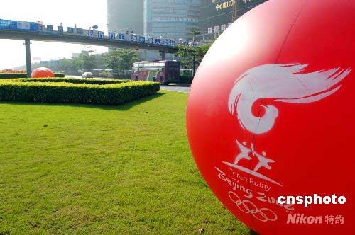 5月7日,奧運(yùn)火炬接力傳遞(深圳站)準(zhǔn)備就緒,期待奧運(yùn)圣火到來。八日,由2008名奧運(yùn)火炬手將穿越深圳進(jìn)行41.6公里的接力傳遞。中新社發(fā) 陳文 攝