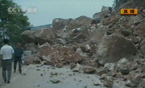 圖:綿陽市北川縣災(zāi)情嚴重 公路擰成“麻花”(2)