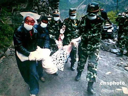 5月12日四川汶川發(fā)生7.8級(jí)地震后,武警重慶總隊(duì)黨委積極組織官兵投入抗震救災(zāi)工作當(dāng)中,在四川、重慶兩地展開(kāi)救援保障工作。5月13日7時(shí)45分,趕赴汶川地震核心區(qū)域的該總隊(duì)500名官兵,途徑茂縣沙塆村疊海風(fēng)景區(qū)時(shí)看到,因地震和大雨造成山石松動(dòng),山上滾下來(lái)的石塊將一輛小轎車和一輛從成都到九寨溝的大客車砸中并掩埋,總隊(duì)官兵當(dāng)即就地展開(kāi)救援工作。中新社發(fā) 周中余 攝