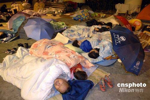 圖:成都地震災(zāi)區(qū)民眾露宿街頭立交橋下