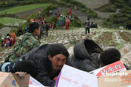 汶川災(zāi)民獲得首批救災(zāi)物資