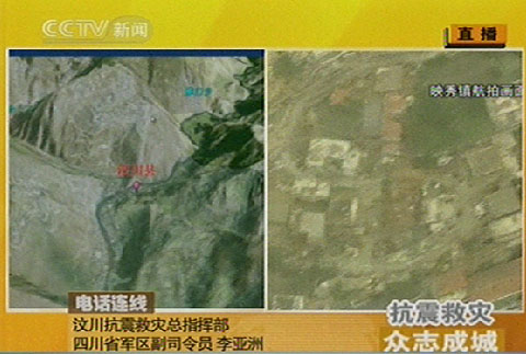 圖:地震重災(zāi)區(qū)映秀鎮(zhèn)航拍畫面