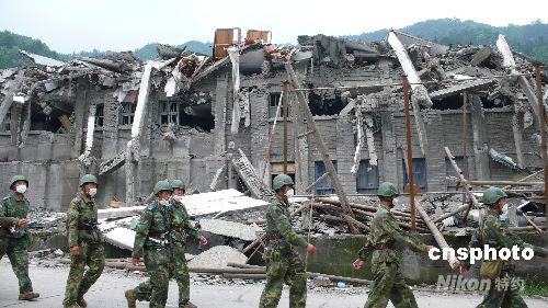 河南搶險救援突擊隊步行進入四川什邡災區(qū)