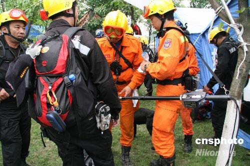 臺(tái)灣地震救援隊(duì)進(jìn)入四川重災(zāi)區(qū)救援 來(lái)自臺(tái)灣的紅十字救援隊(duì),十七日進(jìn)入四川綿竹市漢旺鎮(zhèn)展開搜救工作。中新社發(fā) 齊彬 攝