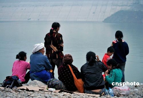 5月16日傍晚,四川都江堰紫坪鋪水庫臨時碼頭邊,已經(jīng)被解放軍和武警官兵解救的村民,在江邊遙望著遠(yuǎn)方,企盼著他們尚在災(zāi)區(qū)的親人。 吳蘇琳 攝