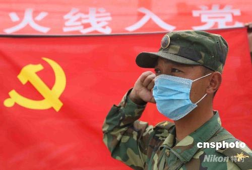 救災(zāi)解放軍士兵火線加入中國共產(chǎn)黨