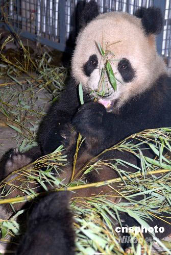 5月24日,來自四川臥龍的8只大熊貓平安抵達北京動物園,開始新的生活。此次進京的8只奧運大熊貓,是今年3月21日啟動的“2008四川臥龍大熊貓奧運北京行”投票評選活動中,由廣大網(wǎng)民從16只大熊貓里選出來的。這8只熊貓,雌雄各半,現(xiàn)在的年齡都在1歲9個月之間,屬亞成體,正是最活潑可愛的年華。 中新社發(fā) 羅小韻 攝
