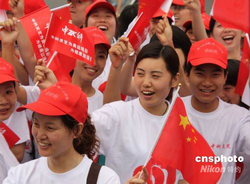 圖:奧運火炬南京傳遞 群眾夾道歡迎(2)