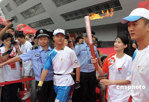 圖為第一棒火炬手跳水世界冠軍李娜在安徽國(guó)際會(huì)展中心起跑。中新社發(fā) 廖攀 攝