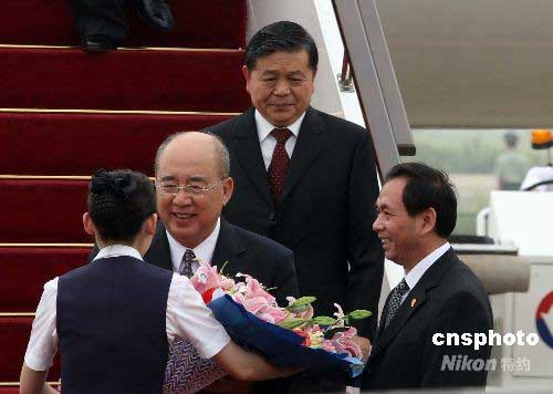 圖:中國(guó)國(guó)民黨主席吳伯雄一行抵達(dá)上海