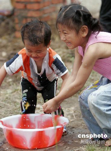組圖:地震災(zāi)區(qū)孩子漸露童真笑臉(3)