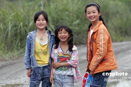 組圖:地震災(zāi)區(qū)孩子漸露童真笑臉(5)