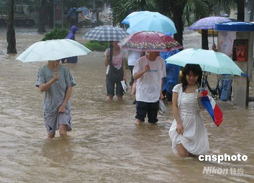 廣西柳州暴雨如注 市民從容面對內(nèi)澇