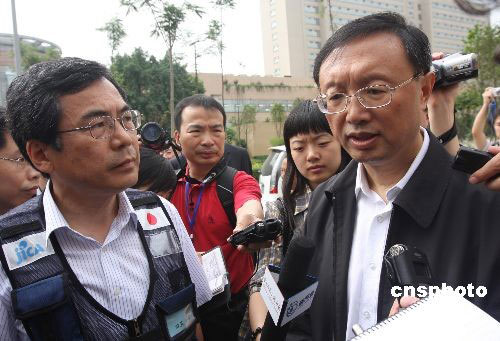 5月30日,中國外交部部長楊潔篪前往四川大學(xué)華西醫(yī)院看望日本醫(yī)療隊,高度贊揚了他們對地震災(zāi)區(qū)民眾的關(guān)心和國際人道主義精神。中新社發(fā) 黃榮 攝