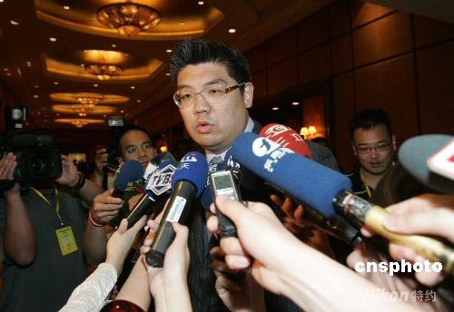 5月30日,中國(guó)國(guó)民黨主席吳伯雄在上海向臺(tái)商答謝,被吳伯雄點(diǎn)名的連勝文專程赴上海參加答謝宴,受到兩岸媒體關(guān)注。中新社發(fā) 潘索菲 攝