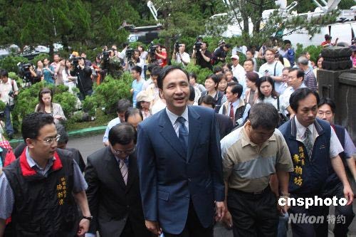 圖為桃園縣長朱立倫(右三)率眾進入慈湖陵寢。中新社發(fā) 耿軍 攝